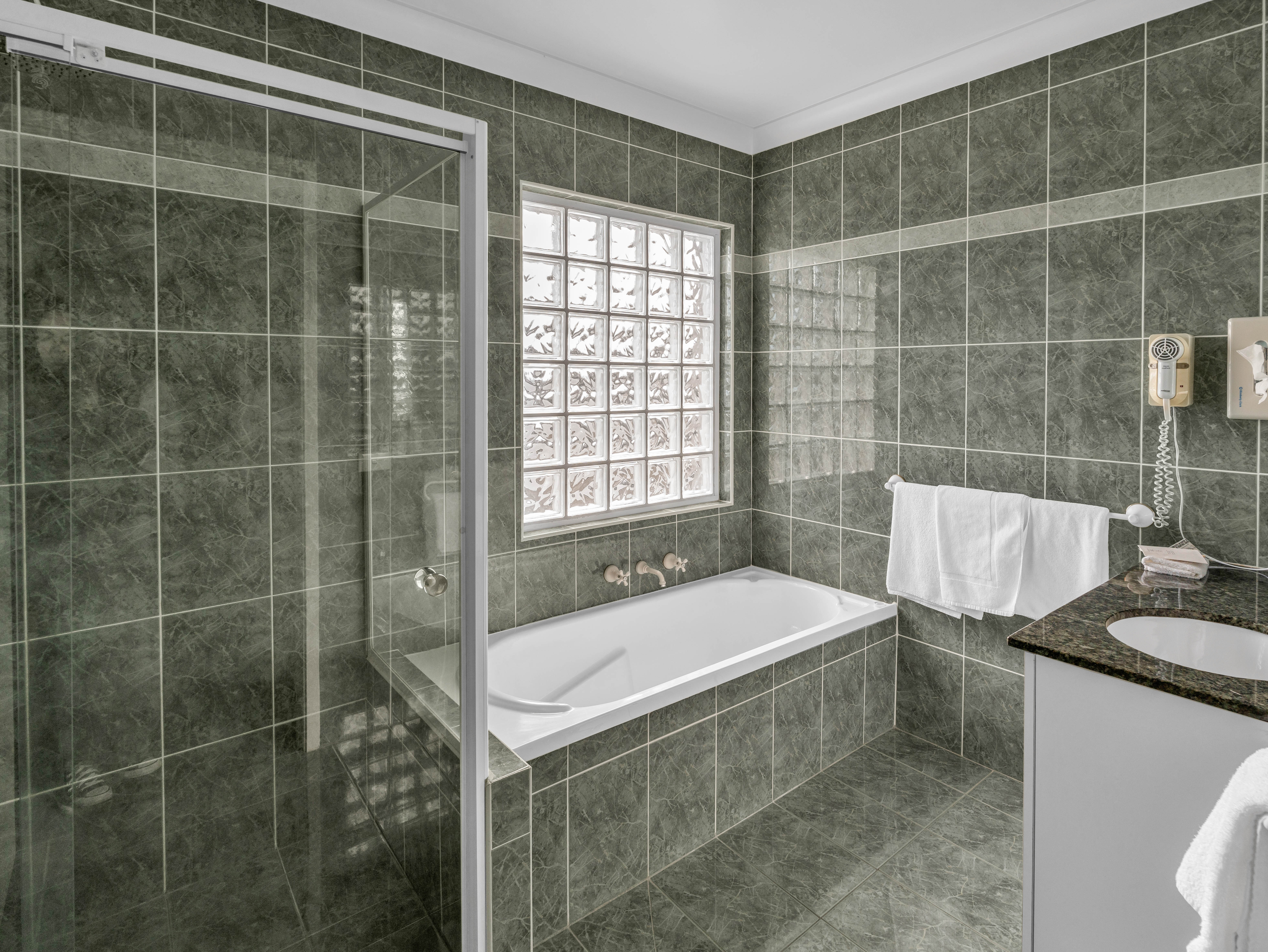 Our spacious Studio Apartment offers additional comfort and convenience, especially for longer stays. The bathroom comes with a separate bathtub and shower.