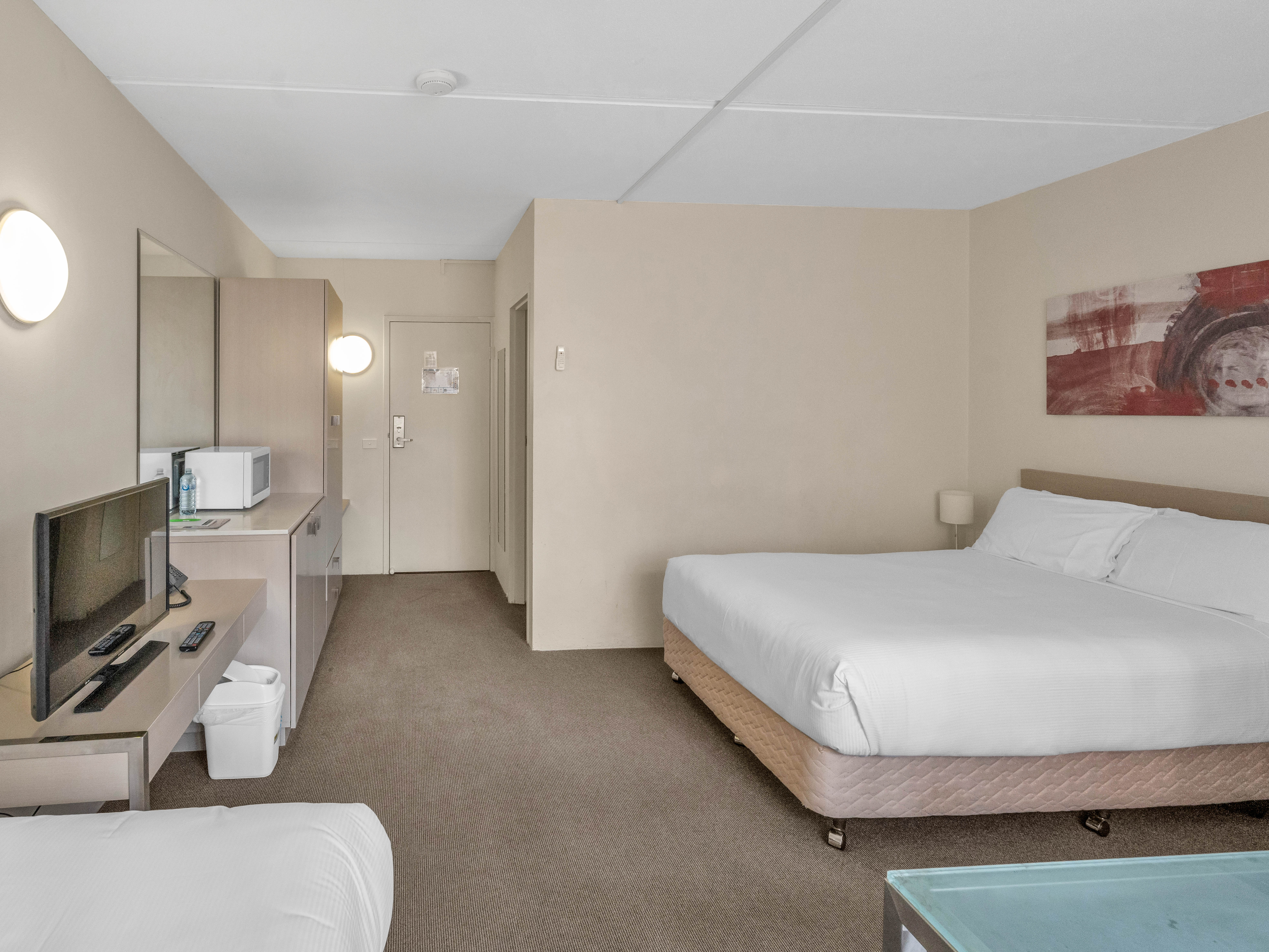 Our Family Rooms make for the perfect family getaway to Canberra. The spacious oversized rooms feature one queen bed, two single beds, ensuite, mini-fridge, complimentary WIFI, microwave, and air conditioning.