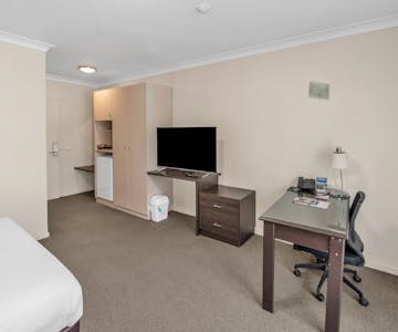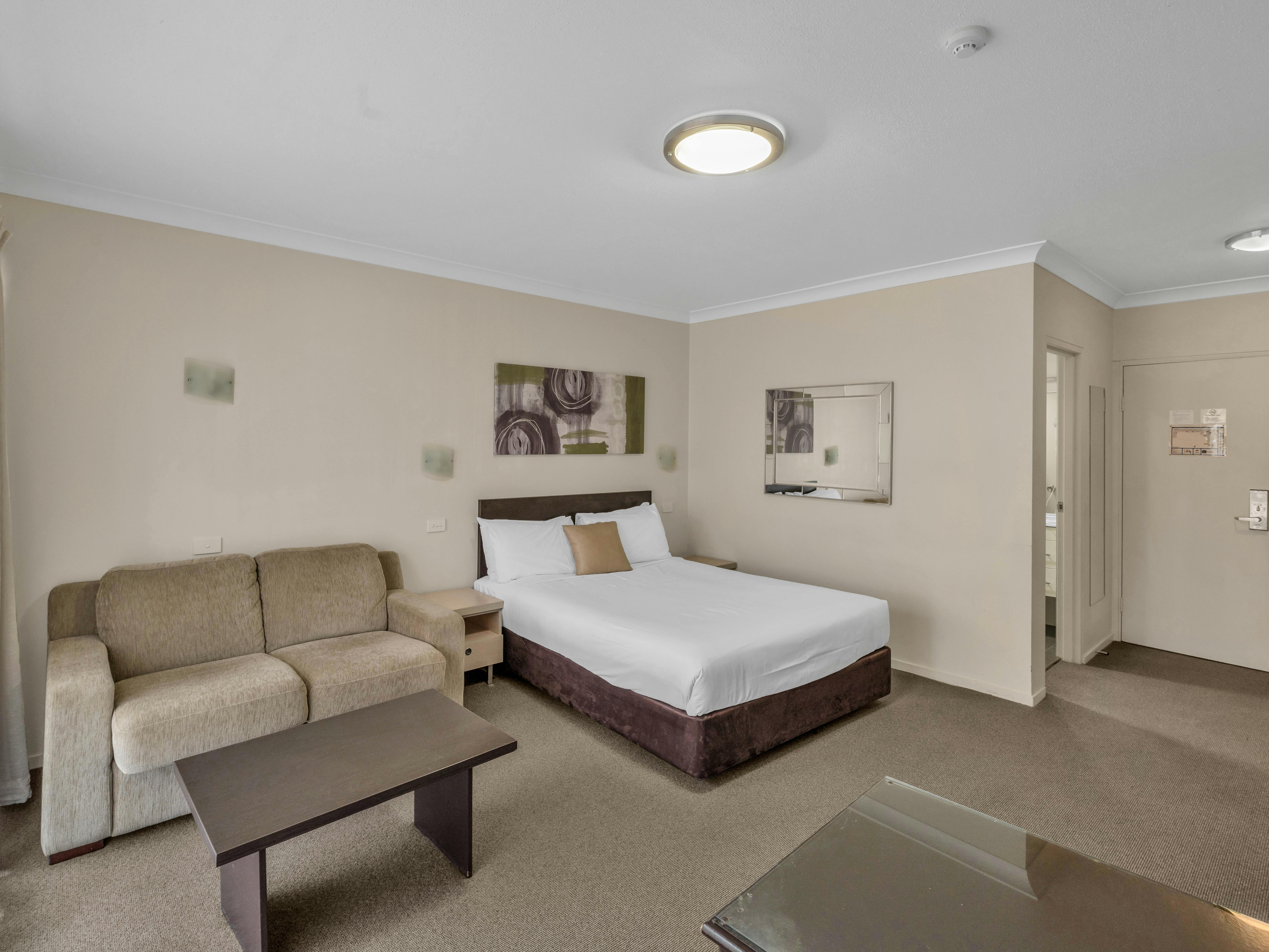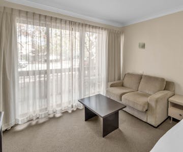 Our comfortable Executive rooms features a queen bed, ensuite with shower and bath, complimentary WIFI, microwave and air conditioning. Enjoy the outdoors from your private balcony. Garden view rooms available upon request.