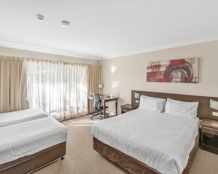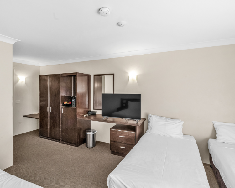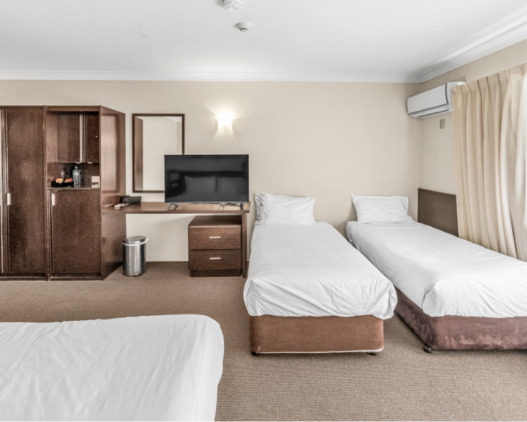Our Family Rooms make for the perfect family getaway to Canberra. The spacious oversized rooms feature one queen bed, two single beds, ensuite, mini-fridge, complimentary WIFI, microwave, and air conditioning.