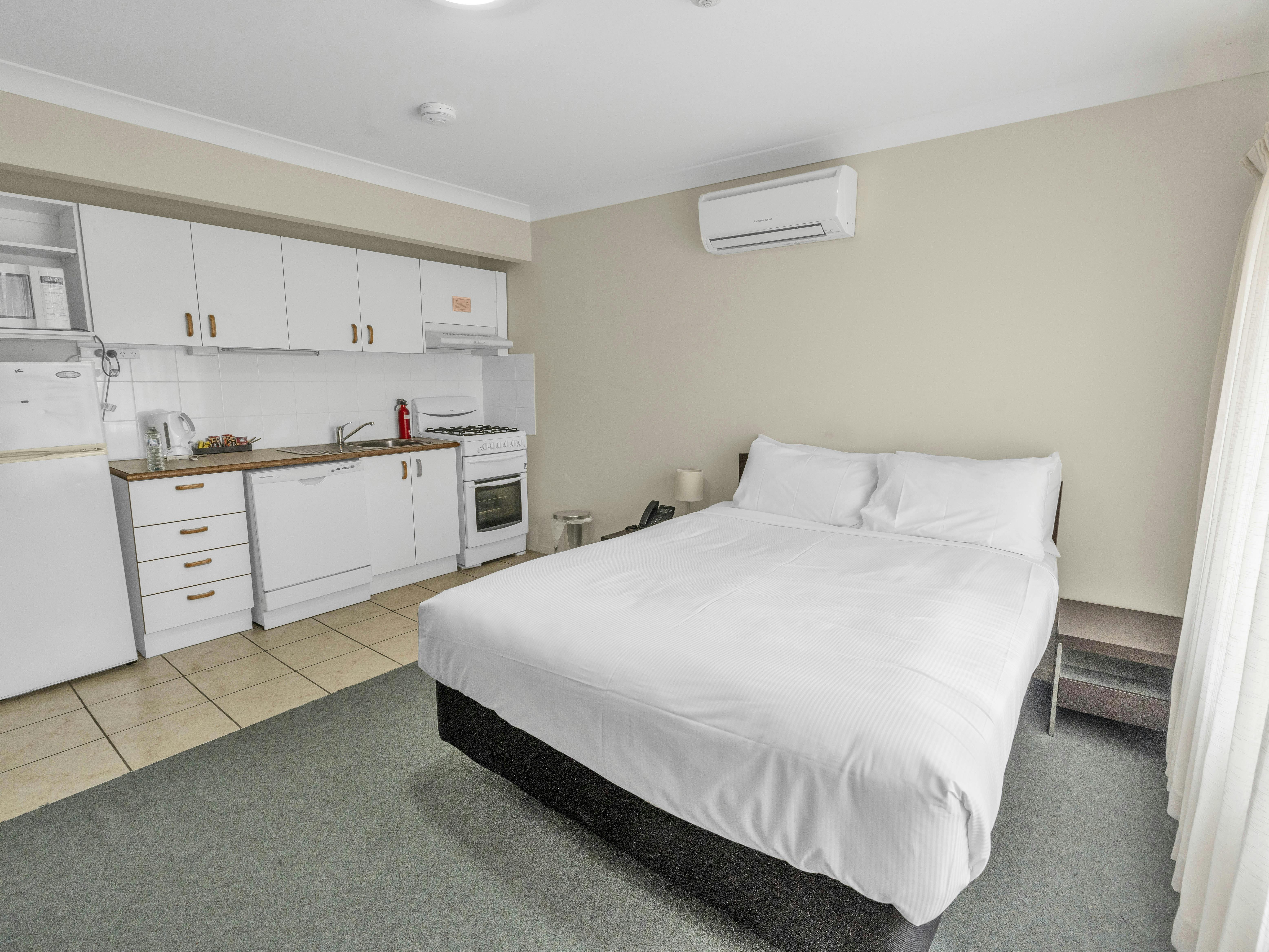 Our spacious Studio Apartment offers additional comfort and convenience, especially for longer stays. The full kitchen includes a stove top, full refrigerator, oven and dishwasher and the bathroom comes with a separate bathtub and shower.